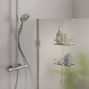 Med denne rummelige brusehylde i blank krom får du en praktisk og stilfuld løsning til opbevaring af dine badeværelsesartikler. Hylden er fremstillet i rustfrit stål og har to niveauer, så både shampoo, sæbe og andre produkter får en fast plads i brusenichen. Det enkle design passer ind i de fleste moderne badeværelser og giver et let udtryk, der ikke stjæler opmærksomheden fra resten af rummet.