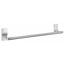 Det, der gør denne håndklædestang særligt fremtrædende, er den rektangulære bagplade i poleret krom. Dette designelement tilføjer en moderne og stilren æstetik, som vil komplimentere ethvert badeværelsesindretning.