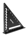 Værktøjet giver dig mulighed for at lave hurtige og præcise 45° og 90° markeringer, og vinklens tykke kant er anvendelig som savføring – den kan bruges direkte med saven mod firkanten til tværsnit eller vinklede snit.