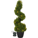 Drømmer du om et varmt og indbydende udtryk ved hoveddøren, på terrassen eller i udestuen? Med denne buksbom i potte får du en dekorativ løsning, der spreder hyggeligt lys uden besvær med vanding eller vedligeholdelse. Den kunstige plante er 65 cm høj og fremstår naturtro med sine grønne blade og snoede form, mens de 20 små LED-lys i kæden giver et blødt, varmt skær, der indrammer dine omgivelser på fineste vis.