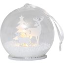 Med denne stemningsfulde julekugle fra Fauna-serien får du en dekorativ detalje til hjemmet, der spreder varme og hygge i mørke vintermåneder. Kuglen er udstyret med et blødt LED-lys, der får de små, hvide snefnug til at glimte, når du ryster den. Figuren med rensdyr og grantræ giver et klassisk juleudtryk, der passer ind på både bord, reol og i vindueskarmen – eller hæng den op, hvor du vil skabe ekstra julestemning.
