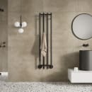 Strømberg Leno er en elektrisk håndklædetørrer designet til at give varme og komfort i hverdagen. Med sit grafiske formsprog og vertikale linje skiller den sig ud fra traditionelle håndklædetørrere. Den matte sorte finish passer ind i de fleste badeværelser og giver et eksklusivt præg på din væg.