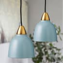 Pendlen er udstyret med et stilfuldt messingrør, der tilføjer et strejf af elegance og kontrast til den blå farve.