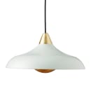 Pendlen er udstyret med et stilfuldt messingmalet rør, der tilføjer et strejf af elegance og kontrast til den grønne farve. Ikke nok med det, så har pendlen en messingmalet indsats, som delvist dækker pæren for blændfri belysning.