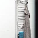 Få hurtigt dejlige, tørre håndklæder ved hjælp af denne Easy håndklædetørrer, der via de lodrette pinde giver en jævn varme. Vægbeslagene skjules bag de vertikale rør, og dækknapperne blender ind med håndklædetørreren for et fuldendt design.
