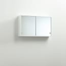 Spejllågerne er traditionelle skydelåger, så du i en glidende bevægelse kan komme til det, du har brug for. Inde i skabet finder du to flytbare hylder, så der plads til alt det, du ønsker at have lige ved hånden i en travl hverdag.