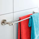 Moon dobbelt håndklædestang er let at montere på væggen. Kan fastgøres til fliser, metal, natursten, marmor, beton, træ, glas og mange plasttyper. Fjernes let uden at efterlade rester. Garanteret rustfrit.