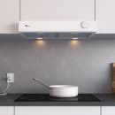 LED belysningen er placeret inde ved væggen og giver derfra et godt overblik over kogepladerne, mens du laver mad.