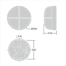Rund, stødsikker LED udendørs vægarmatur. Elektronisk fastspændt kontroludstyr. Klasse I elektrisk, IP65, IK10. Krop: lille størrelse, støbt aluminium (LM6), pulverlakeret antracit. Skærm: opal polycarbonat med støbt aluminiums halo-visir. Elektrisk tilslutning via 3 x 2 x 2,5 mm² terminalblok. Komplet med 3000K LED
