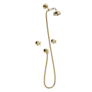 Det solide brusesæt er fremstillet i massiv messing og har en blank, poleret messingoverflade, som både tilfører badet et raffineret udtryk og sikrer lang holdbarhed. Med sit tidløse design passer det perfekt ind i både moderne og traditionelle badeværelser, hvor det bidrager til en harmonisk helhed.