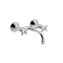 Dette vægmonterede håndvaskarmatur med karakteristiske krydsgreb er skabt til dig, der ønsker et tidløst udtryk og kompromisløs funktionalitet i badeværelset. Armaturet er udført i massiv messing og har en skinnende kromfinish, der både fremhæver det klassiske formsprog og sikrer lang holdbarhed.