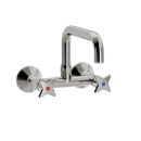 Tidløst vægmonteret håndvaskarmatur med klassiske krydsgreb i nikkel