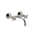 Dette vægmonterede håndvaskarmatur med karakteristiske krydsgreb er skabt til dig, der ønsker et tidløst udtryk og kompromisløs funktionalitet i badeværelset. Armaturet er udført i massiv messing og har en blank nikkelfinish, der både fremhæver det klassiske formsprog og sikrer lang holdbarhed.
