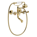 Dette kararmatur med brusesæt i blank messing kombinerer et ikonisk formsprog med moderne komfort. Løsningen er skabt til dig, der ønsker et pålideligt armatur, hvor holdbarhed og brugervenlighed går hånd i hånd. Med sit forlængede greb og klassiske udtryk passer armaturet naturligt ind i både stilrene badeværelser og mere traditionelle omgivelser.