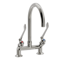 Armaturet er designet i 1937 af Otto Sparre-Petersen og produceres stadig efter de samme høje standarder. Den polerede nikkeloverflade giver et skinnende udtryk, der komplimenterer det danske formsprog. Det forlængede greb gør betjeningen intuitiv og hygiejnisk, uanset om du bruger hånden eller albuen.