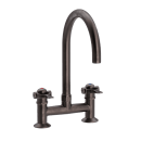 Det solide messing og den brunerede overflade er valgt for at sikre lang levetid og nem vedligeholdelse. Overfladen modstår hverdagens slid, og med regelmæssig aftørring bevarer armaturet sit flotte udtryk i mange år. Serien er kendt for sin pålidelighed og sit karakteristiske formsprog, som har gjort den populær både i professionelle og private køkkener.