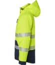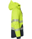 Detaljerne er lavet til praktisk brug: hætten kan tages af og justeres, og ærmevidden kan tilpasses med velcro. I manchetterne er der hul til tommelfinger, og bunden kan justeres med elastik for en mere lukket pasform. Jakken har brystlommer med lynlås, åbne sidelommer, en ID-kort lomme samt en skjult lynlåslomme. Indvendigt findes både inderlommer og inderlommer med lynlås, og godkendte reflekser bidrager til høj synlighed.