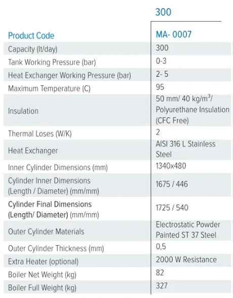 - 300 liter med stor spiraloverflade på 1,59 m²