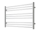 En dekorativ og funktionel håndklædetørrer med 9 vandrette rør anbragt i tre sektioner.
