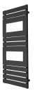 En flot og anderledes design-håndklædetørrer fra TVS, med god ydelse i forhold til de ydre mål. Kendetegnet er det flade design som gør at den passer ind i badeværelset med de rene linier. Velegnet til det mellemstore badeværelse, hvor der er behov for supplement til gulvarme. Der medfølger 2 krom håndklædekroge som monteres imellem de vandrette rør efter ønske.