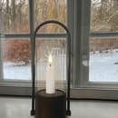 Lanternens moderne form og sortmetal stel giver et minimalistisk udtryk, der passer til både klassisk og moderne boligindretning. Den klare glaskuppel beskytter lyset og lader det varme skær skinne uforstyrret ud i rummet. En diskret detalje med stor effekt – uanset hvor du placerer den.