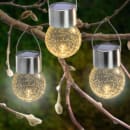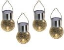 Solcelle glaskugler med hvidt lys. I pakken er der 4 stk.