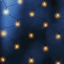 Lyskæden er opbygget af 80 LED lys der afgiver skønt, varmhvidt lys til dine omgivelser i haven, og med de sorte ledninger og tilslutningskablet på 50 cm. til batteriboksen kan skjules iblandt grene, så kun dioderne er til at se.