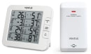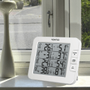 Det store, tydelige display er opdelt i fire felter, så du nemt kan aflæse både temperatur og luftfugtighed fra op til tre udendørs placeringer samt ét sted indendørs. Tre trådløse sensorer medfølger, og du kan tilkøbe flere, hvis du vil udvide overblikket. Vejrstationen er oplagt til dig, der gerne vil skabe de bedste rammer om hverdagen – hvad enten det gælder komfort i hjemmet, planlægning af haveprojekter eller bare nysgerrighed på vejrets små finurligheder.