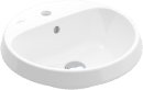 Denne runde porcelænshåndvask fra Villeroy & Boch-serien Architectura har en platform med hul til armaturet. Den er perfekt, hvis du f.eks. har en bordplade i træ. Platformen har også plads til en sæbedispenser.