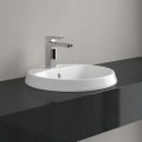 Denne runde porcelænshåndvask fra Villeroy & Boch-serien Architectura har en platform med hul til armaturet. Den er perfekt, hvis du f.eks. har en bordplade i træ. Platformen har også plads til en sæbedispenser.