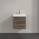 Skabet har en venstrevendt lĂ¥ge med soft close, hvilket gør det behageligt og lydløst at bruge i hverdagen. Den naturlige træfineroverflade i grĂ¥ eg tilfører varme og karakter, mens det enkle design sikrer, at skabet passer ind i mange forskellige indretninger. Det er designet til at give dig praktisk opbevaringsplads under vasken, sĂ¥ du nemt kan organisere dine badeværelsesting uden at gĂ¥ pĂ¥ kompromis med stilen.