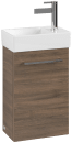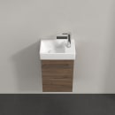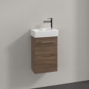 Dette underskab i brun eg er et oplagt valg til det moderne badeværelse, hvor både æstetik og funktionalitet er i fokus. Med sin kompakte størrelse passer skabet perfekt under mindre vaske, uden at gå på kompromis med opbevaringspladsen.