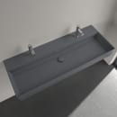 Med Memento får du en håndvask med firkantet form og let afrundede hjørner. Den store rektangulære kumme giver dig god plads til at vaske hænder. Håndvasken har to hanehuller og skal derfor bruge to armaturer, hvilket er perfekt, hvis man er flere, der skal børste tænder på samme tid.