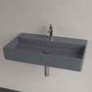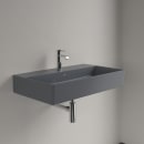 Håndvasken monteres på traditionel måde på væggen. Der er god plads på håndvaskens bagkant til sæbe og eventuelt et tandkrus. Denne håndvask har en elegant og luksuriøs mat grå overflade.