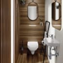 Det væghængte toilet monteres på en indbygningscisterne og er rimless, hvilket betyder at skålen er uden skyllekant. Dette gør den særdeles nem at rengøre og vedligeholde.