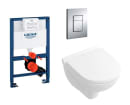 Komplet toiletpakke med moderne og tidsløs hængeskål, toiletsæde, betjeningsplade og indbygningscisterne. Pakken indeholder de nødvendige dele der skal anvendes ved montering af væghængt toilet.