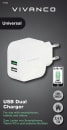Adapteren kan tage 2 kabler ad gangen med USB-A stik. Den ene udgang kan tage 2,4A og den anden 1A.