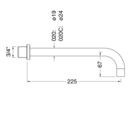 Vola 225 mm fast tud med luftindblander - messing natur