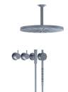 Med VOLA’s brusekoncept er det muligt at sammensætte sin egen individuelle designløsning ved at kombinere ventilsystem, greb, udløb, dækplade eller roset sammen med udvalgte tilbehørsdele som håndbrusere, hovedbrusere og sidebrusere. Hele VOLA designet er skabt med udgangspunkt og videreudvikling af de geometriske former fra Arne Jacobsens originale armaturdesign til Nationalbanken i 1968.
