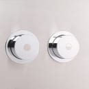 Med Vola A83 trykknapsæt med dobbelt pneumatisk skyl får du et flot, stilfuldt og funktionelt element til dit badeværelse, der kombinerer flot design med den kendte høje Vola kvalitet. Trykknapperne er udført i krom (Vola farvekode 16) og er ideelle til at skabe et minimalistisk udtryk i dit badeværelse, samtidig med at de giver dig fuld kontrol over skylningen med stort og lille skyl. Rosetterne måler Ø60 mm, og selve knapperne måler Ø40 mm.