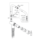 Komplet med fortud og bagtud til Vola KV1 køkkenarmatur produceret fra 1997 til og med 2012.