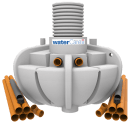 WaterCare 5PE 2300 l 3-kammertank til gravitation med fordelerbrønd og DN500 (560/500 mm) opføringsrør. CE-mærket efter EN12566-1. Alarm og låg kan tilkøbes.