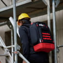 Rygsækken har en fast bund for at beskytte værktøjet, smarte befæstelsespunkter udenpå, og separate rum til tester og kontorudstyr. Den er også vandtæt og skridsikker.
