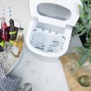 Maskinen leverer op til 70 isterninger i timen og kan producere op til 12 kg is på et døgn. Du kan vælge mellem to forskellige størrelser isterninger, så du altid har den rette is til både cocktails og saftevand. Med sit diskrete sølvlook og kompakte design passer maskinen ind i både køkkenet og hjemmebaren – og den er let at tage med, hvis festen flytter udendørs.