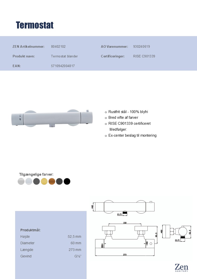 - Termostatstyring og skoldningsspærre: Sikker og stabil temperatur under hele brusebadet