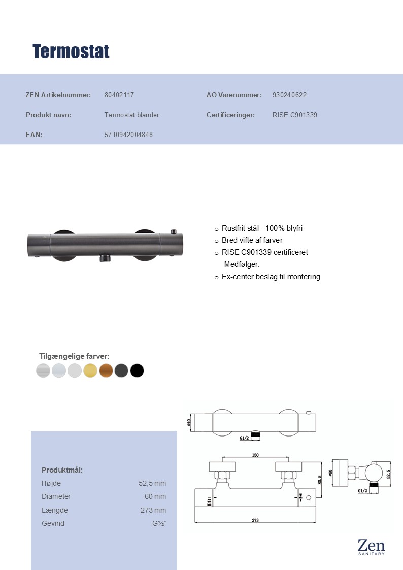 - Termostatstyring og skoldningsspærre: Sikker og stabil temperatur under hele brusebadet