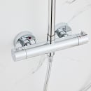 Med det præcise termostatarmatur og skoldningssikringen ved 38 grader kan både børn og voksne bruge bruseren trygt. Drejegrebet gør det let at styre vandtemperaturen, og omskifteren på armaturet gør det enkelt at skifte mellem hoved- og håndbruser.