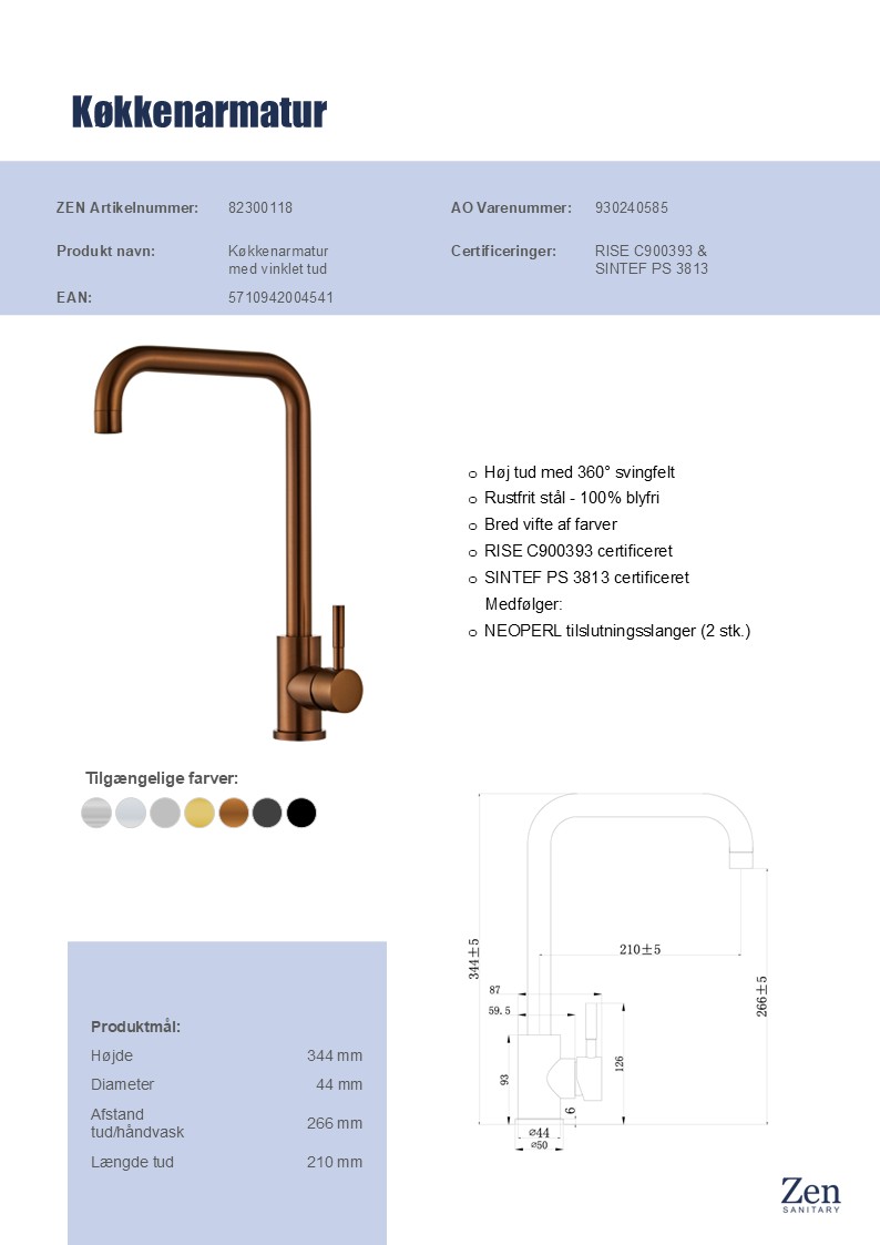 - Høj svingbar tud: Giver fleksibilitet og gør det let at arbejde ved vasken