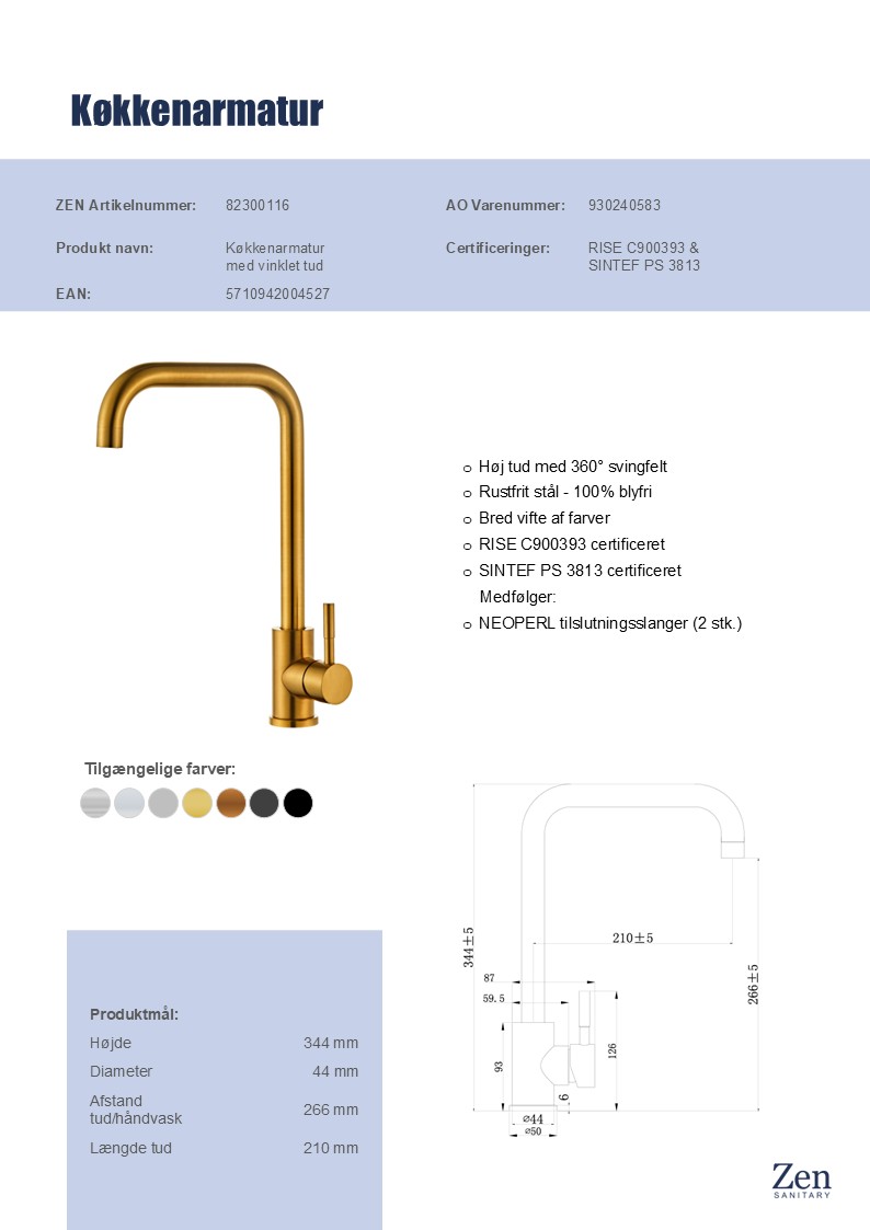 - Høj svingbar tud: Giver fleksibilitet og gør det let at arbejde ved vasken