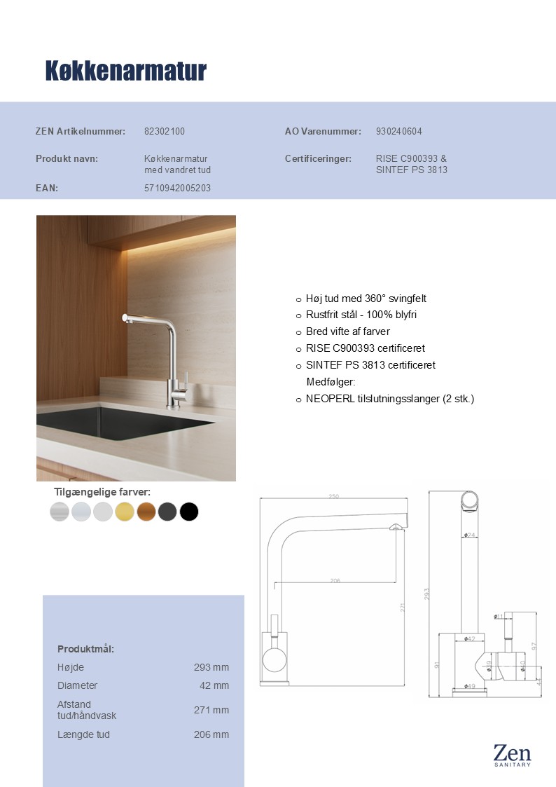 Den høje tud med 360° svingfelt gør det nemt at fylde gryder eller rengøre store fade, og den enkle betjening med ét greb sikrer, at du nemt kan justere vandtemperaturen. Armaturet er fremstillet i 100% blyfrit rustfrit stål og leveres med fleksible NEOPERL-slanger, så montering bliver enkel og hurtig. Vælg dette køkkenarmatur, når kun det bedste er godt nok til din hverdag.